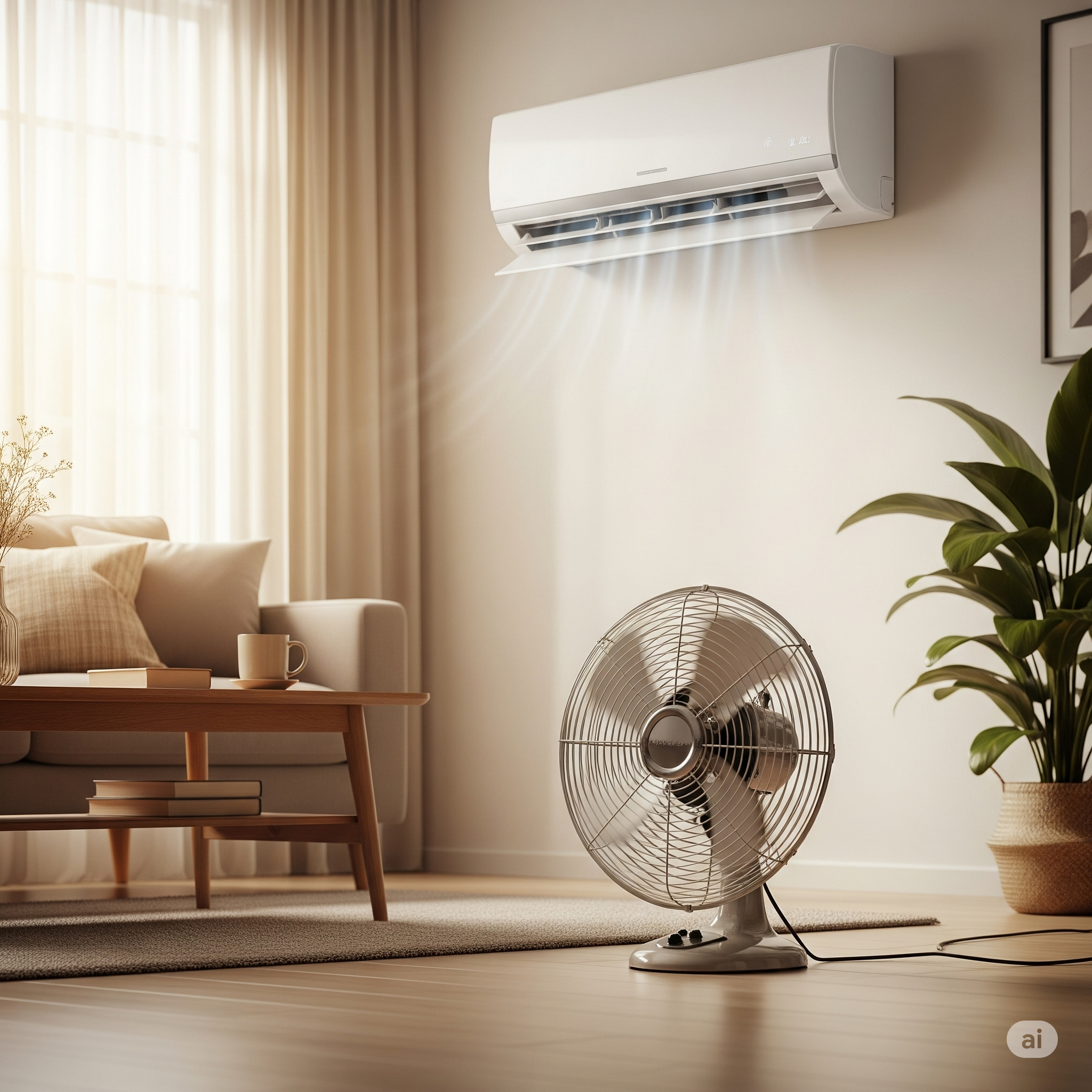 에어컨만 단독으로 사용하기보다 선풍기나 서큘레이터를 함께 켜면 실내 공기가 빠르게 순환돼 냉방 효율이 높아집니다.