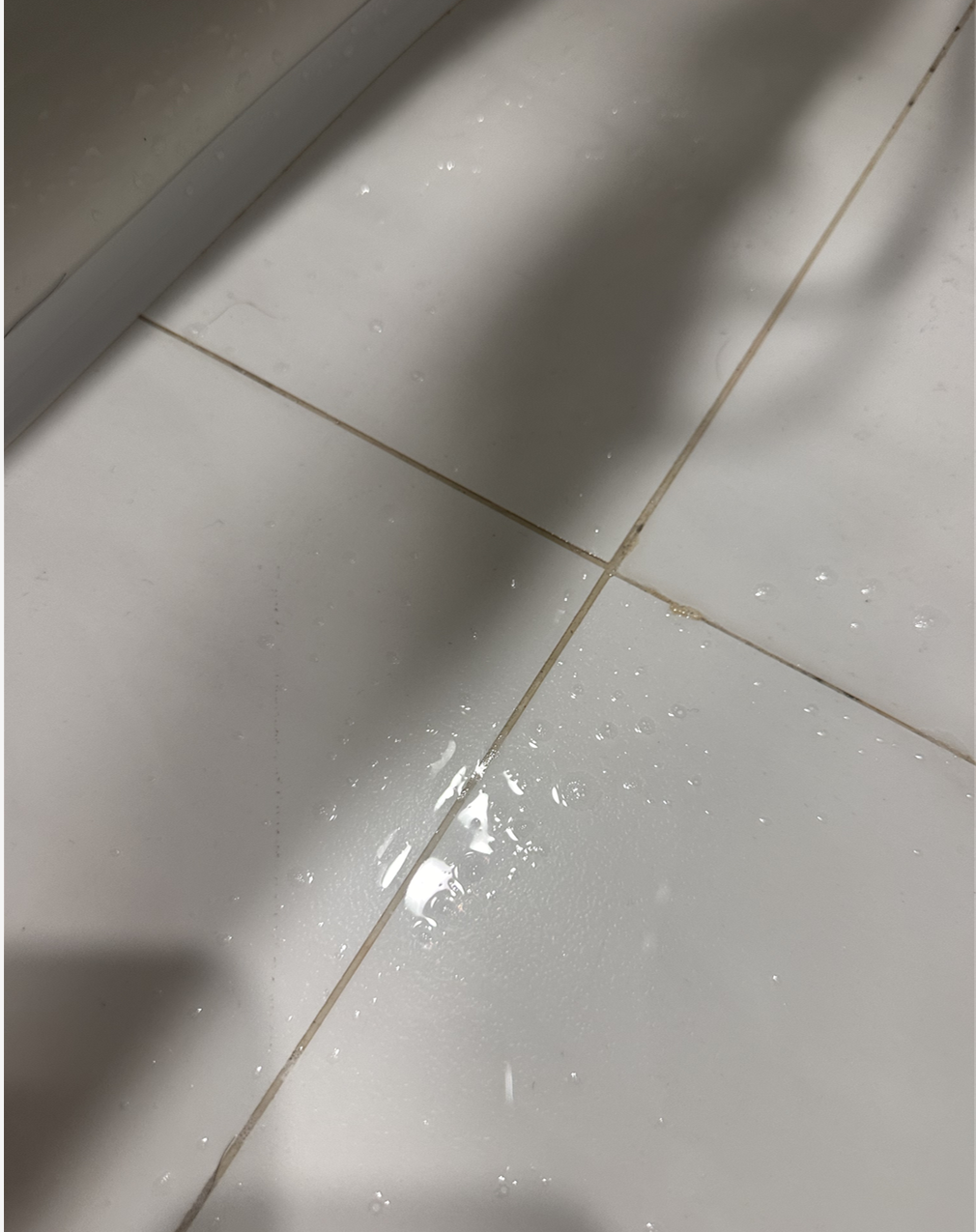 - 물기 제거: 일단 줄눈 부위의 물기를 어느 정도 제거해 주세요. (세제가 희석되지 않게 하기 위함입니다.)