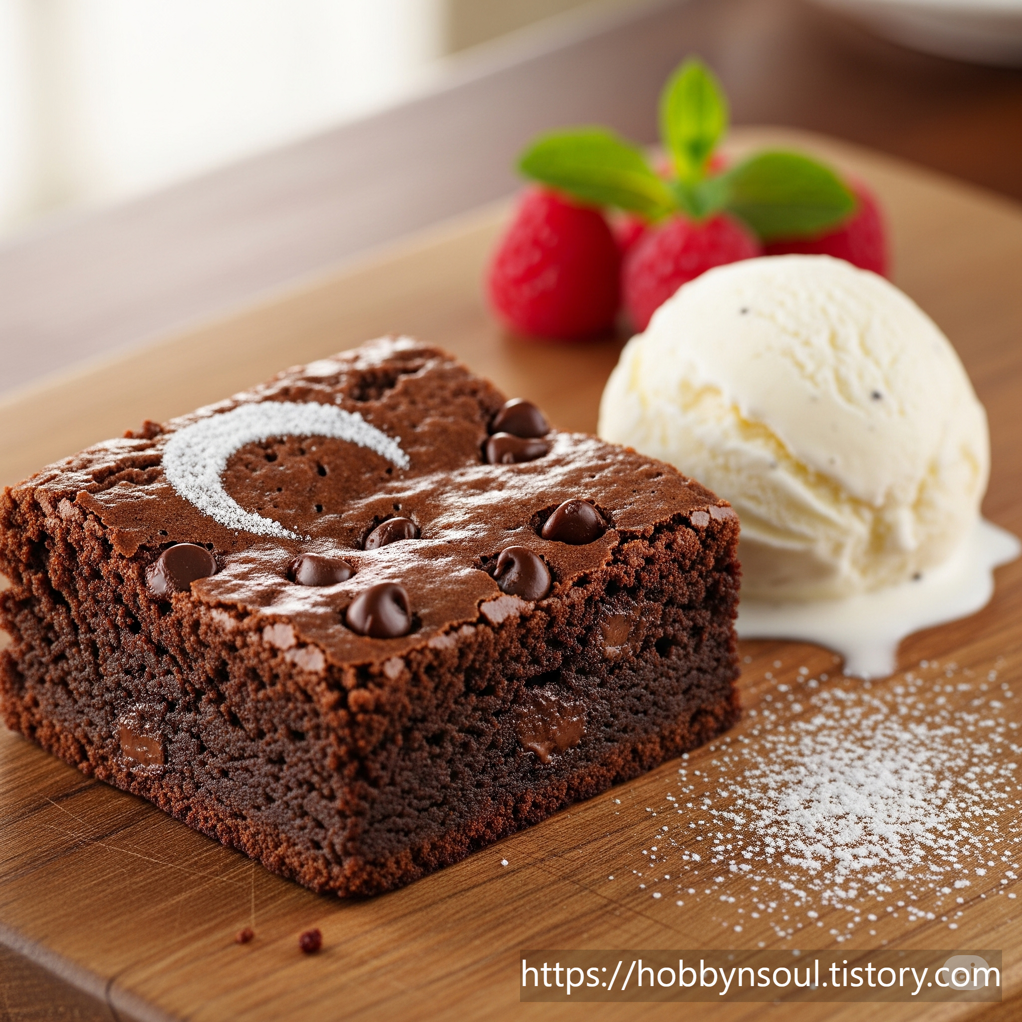 - 위에 슈가파우더를 뿌리면 시각적으로 고급스러워집니다.