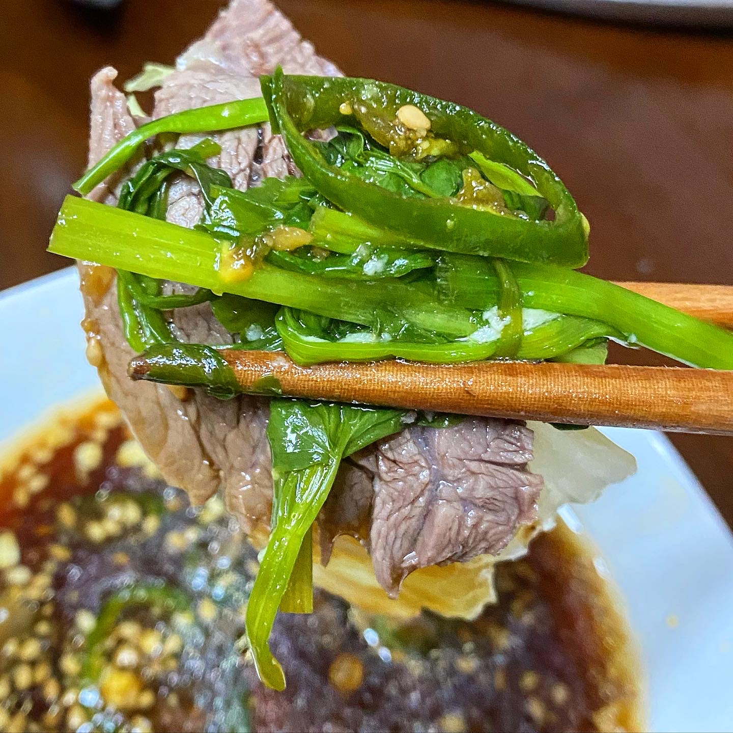 • : 한입 베어 물자 고소하면서도 진한 육향이 퍼집니다. 부드럽게 씹히는 살코기와 탱글탱글한 힘줄이 동시에 느껴지는데, 기름지지 않고 깔끔합니다.