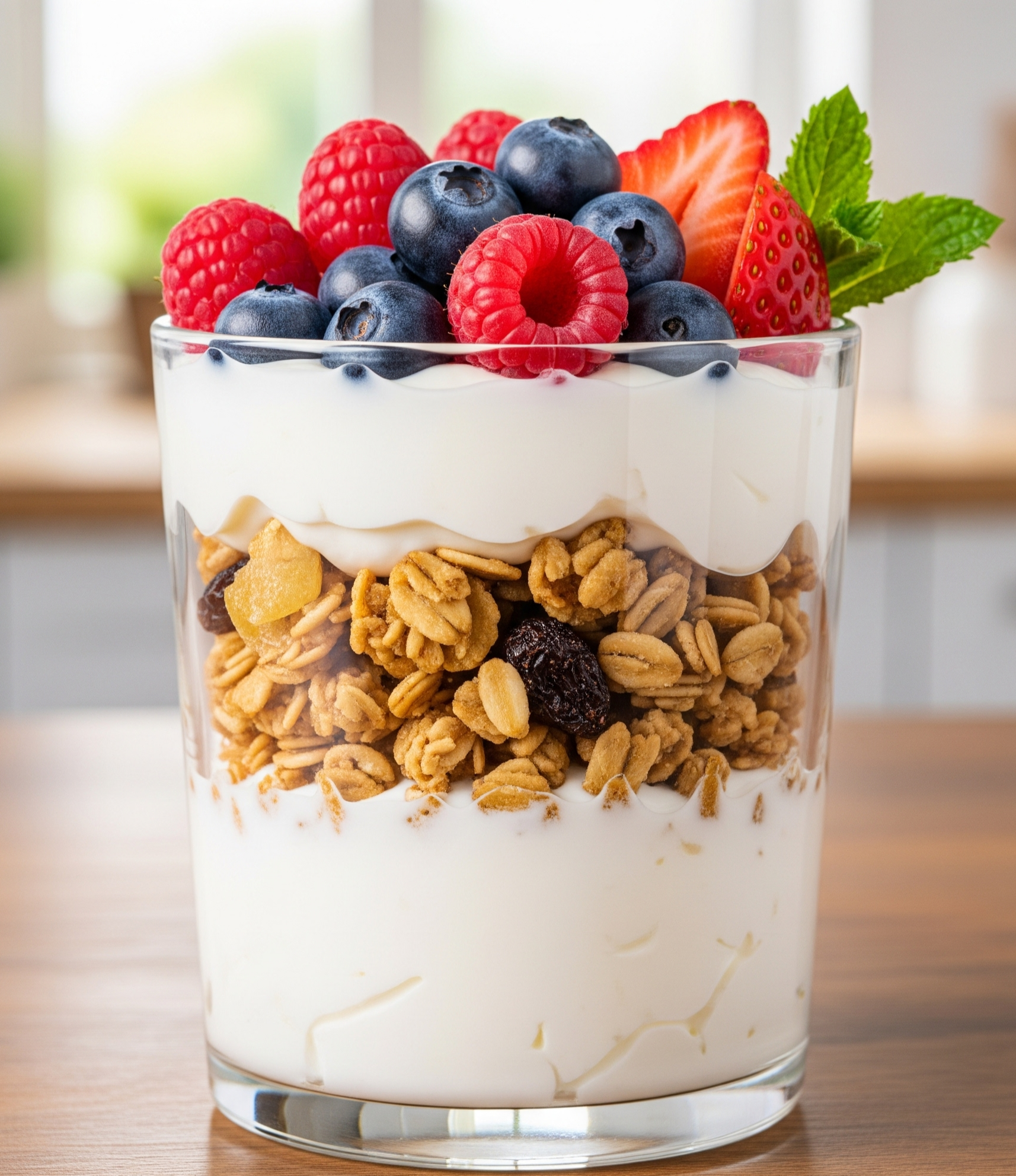 - 재료: 플레인 요거트, 딸기·블루베리 같은 제철 과일, 그래놀라