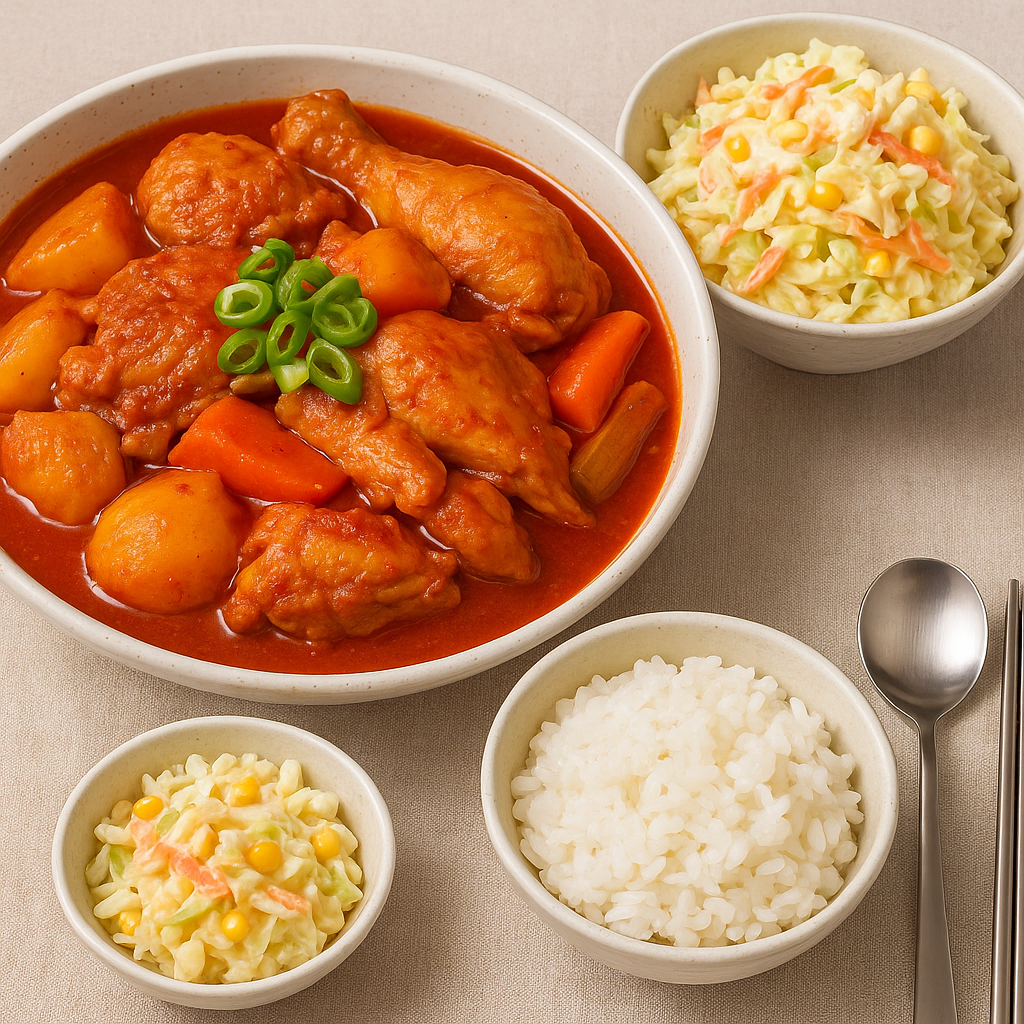 닭도리탕이라고도 불리는 닭볶음탕은 빨갛고 얼큰한 양념에 닭과 감자, 당근을 푹 끓여내는 한국 가정식의 대표 메뉴예요. 매콤하면서도 달큰한 양념이 밥과 환상적으로 어울려 ‘밥도둑’이라는 별명이 괜히 붙은 게 아닙니다.