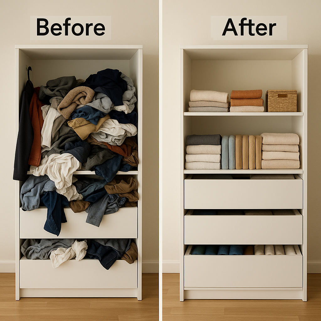 • Day 7: 옷 개는 법 실습 (곤마리 ‘세로 접기’ 방식으로 서랍 정리)