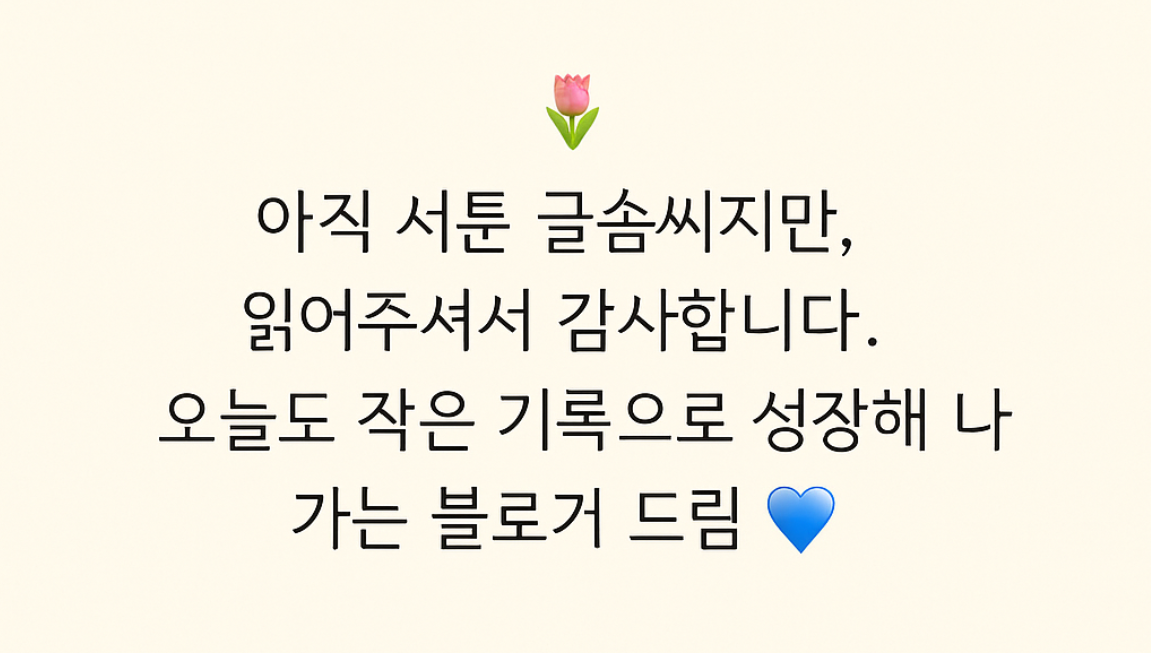 👉 아직 서툰 글솜씨지만, 제 글을 읽어주셔서 진심으로 감사드립니다. 앞으로 더 좋은 글로 보답할 수 있도록 노력하겠습니다. 💙